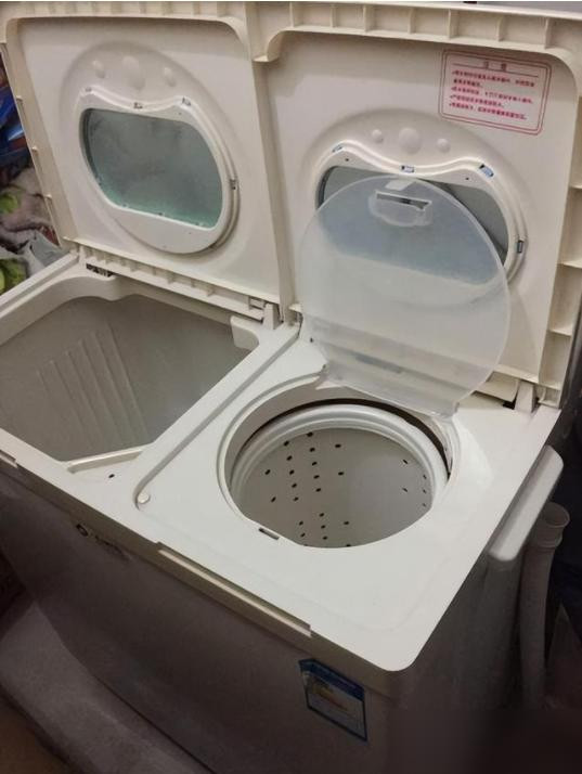 双缸机的甩干桶是离心式的,衣服放进去铺平整,甩完拿出来还是展开的,不用扯来扯去。