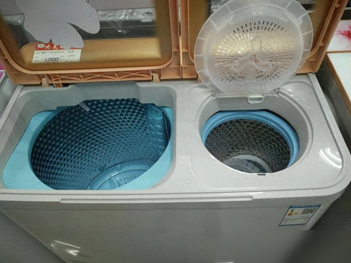 我陪她逛家电城,全自动的二手都要八百多,新的更贵,可转角货架上的双缸机才三百二——塑料外壳,两个圆桶并排,按钮就三个:电源、洗涤、甩干。